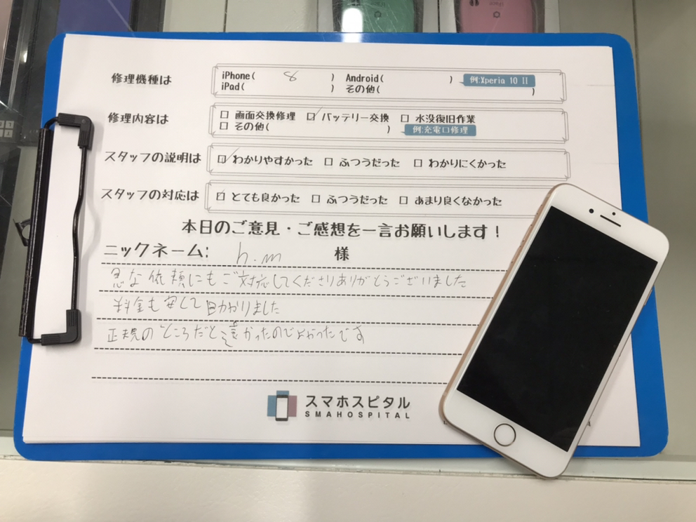 スマホスピタル 大阪梅田 iPhone8のバッテリー交換修理をしました!