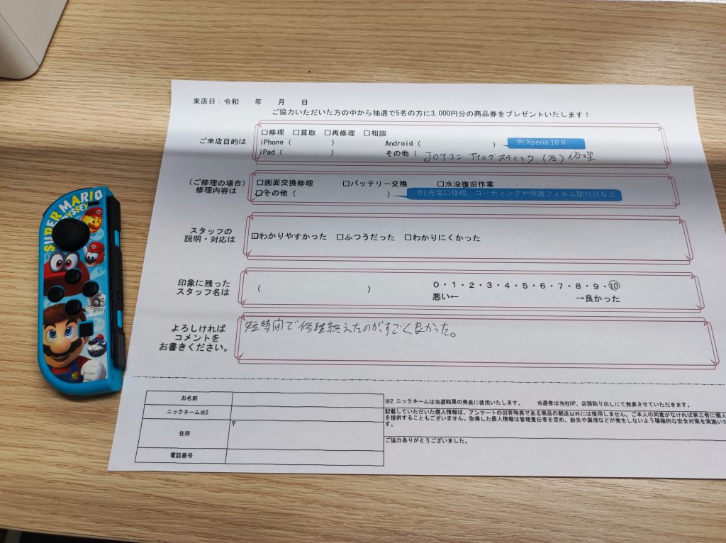 【お客様の声】西宮市よりお越しのお客様3DSLLの修理をさせていただきました。