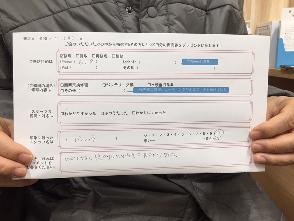 スマホスピタル 大阪梅田 【お客様の声】iPhone6sとiPhone8のバッテリー交換をしました!