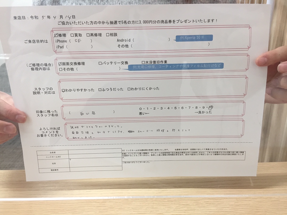 スマホスピタル 大阪梅田 【お客様の声】iPhoneSEの画面交換修理をさせて頂きました。