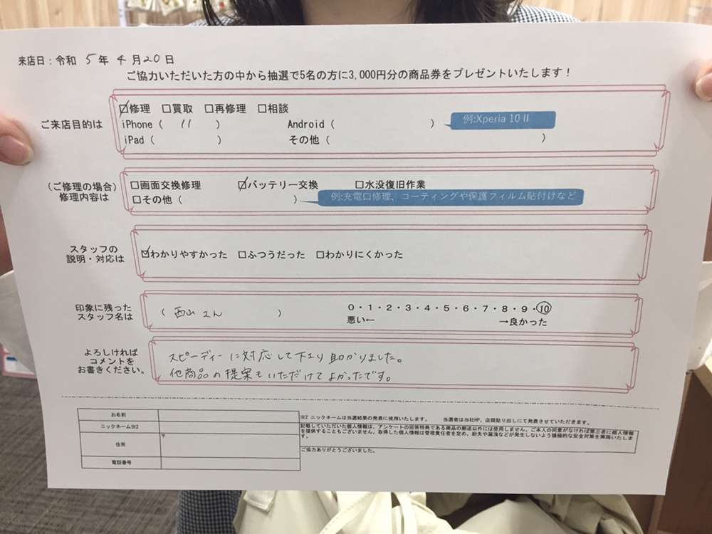 【お客様の声】iPhone11バッテリー交換をさせ頂きました!