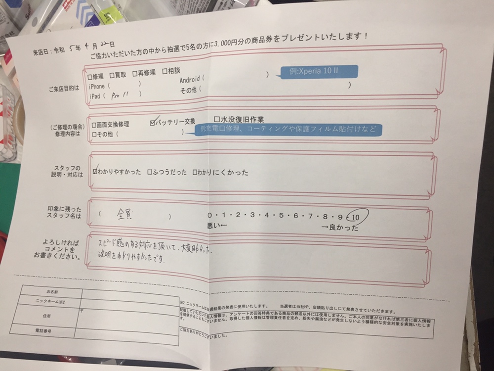 スマホスピタル 大阪梅田 【お客様の声】iPad Pro 11(第1世代)のバッテリー交換修理をさせて頂きました。