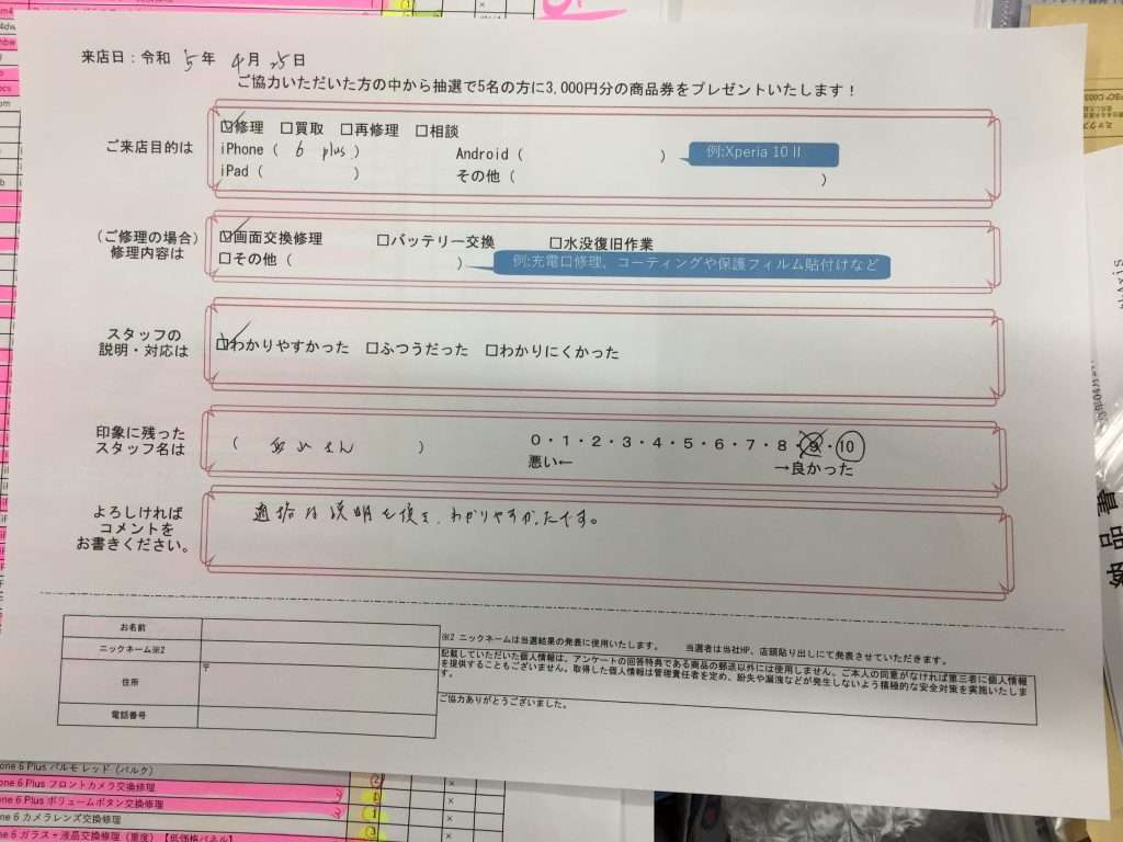 【お客様の声】iPhone6plus画面交換修理をさせて頂きました!