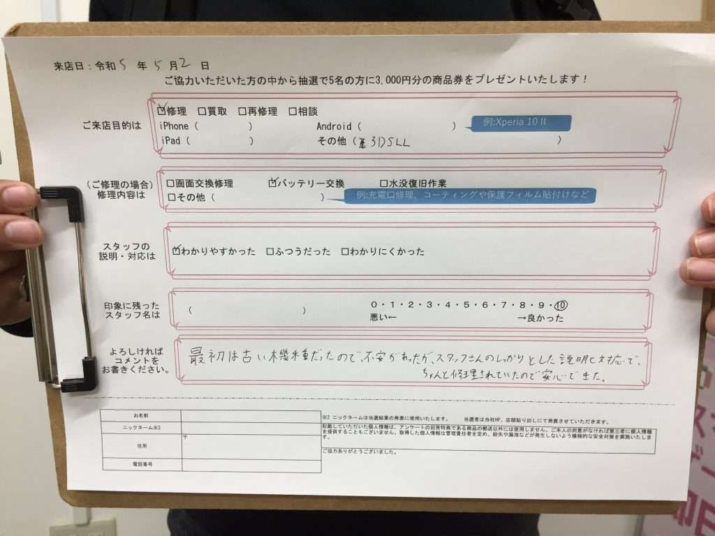 【お客様の声】西宮市よりお越しのお客様3DSLLの修理をさせていただきました。