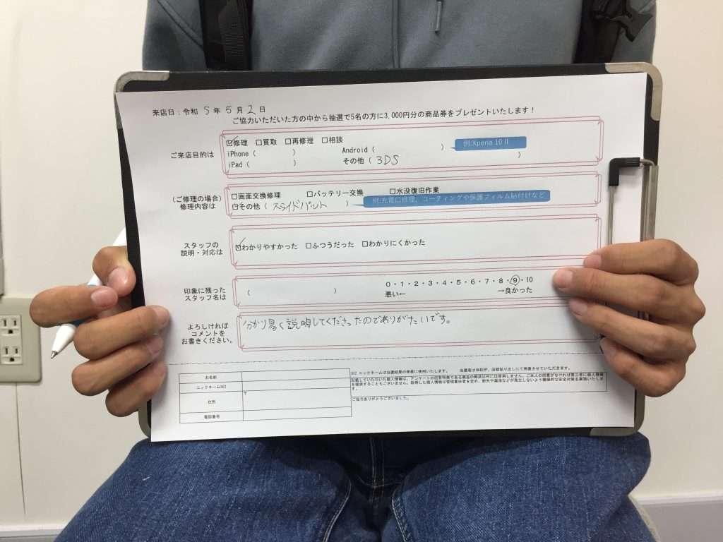 【お客様の声】西宮市よりお越しのお客様3DSLLの修理をさせていただきました。