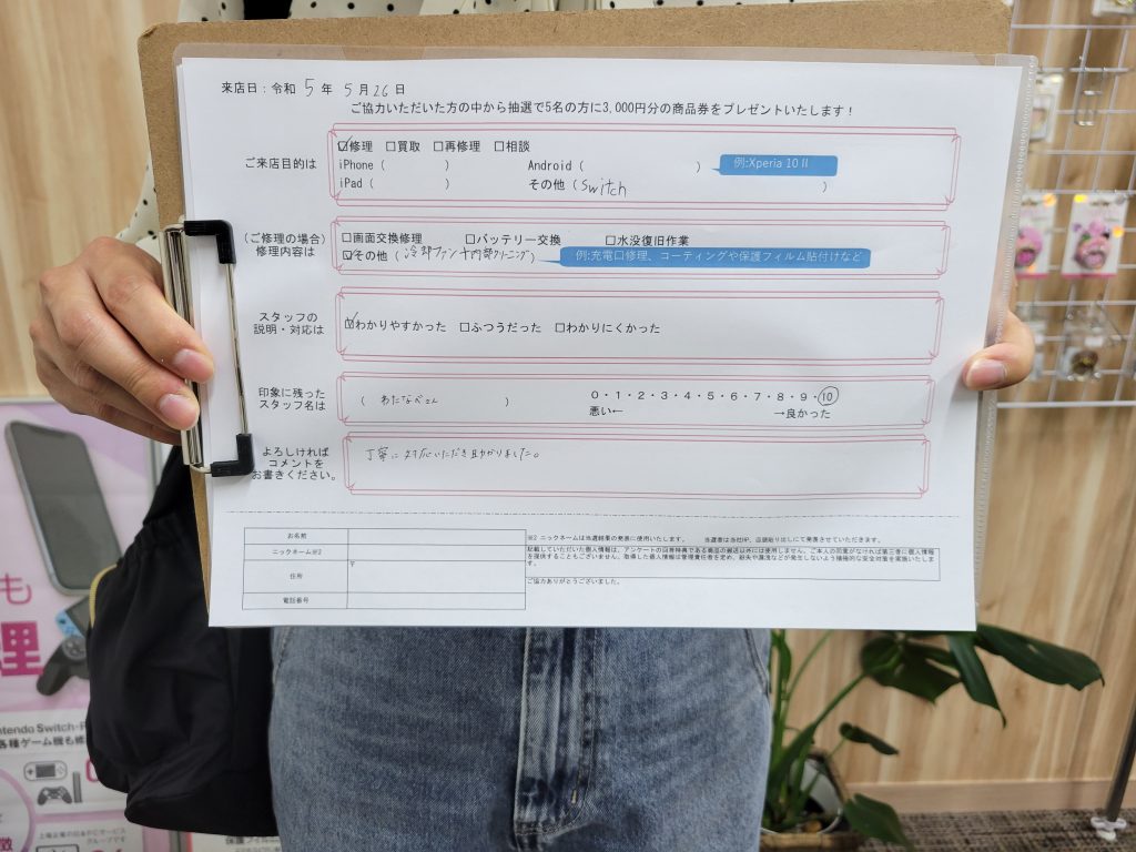 スマホスピタル 大阪梅田 【お客様の声】switchの冷却ファン交換修理と内部クリーニングをさせて頂きました。