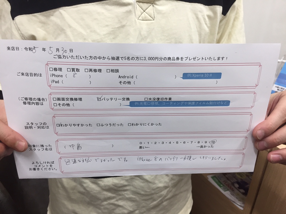 【お客様の声】iPhone8のバッテリー交換させてしまいました。