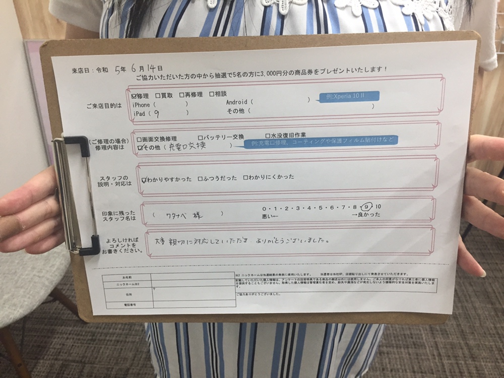【お客様の声】iPad9の充電口交換をさせて頂きました!