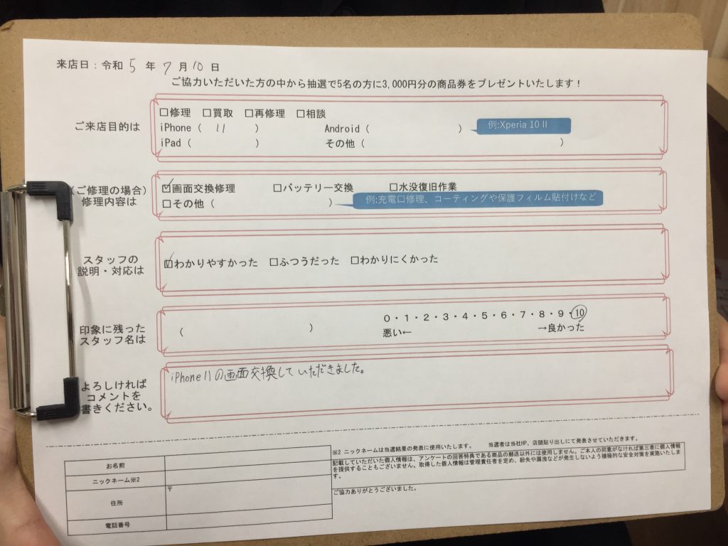 【お客様の声】iPhone11画面交換修理をさせて頂きました。