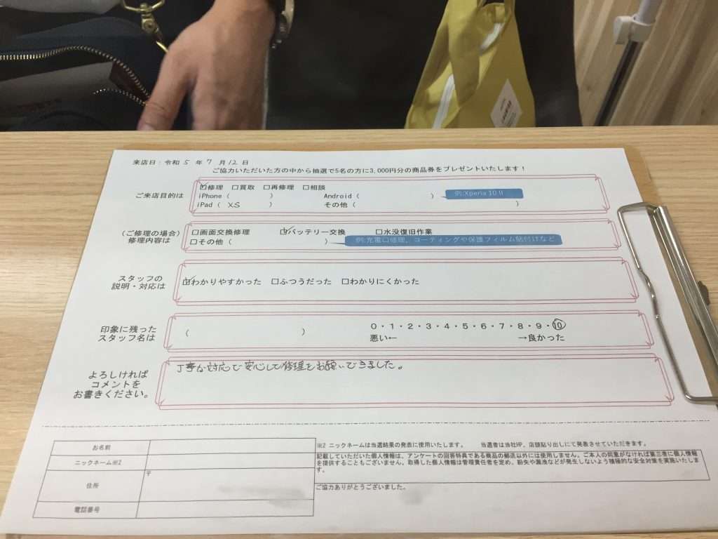 スマホスピタル 大阪梅田 【お客様の声】iPhoneXSバッテリー交換修理させて頂きました。