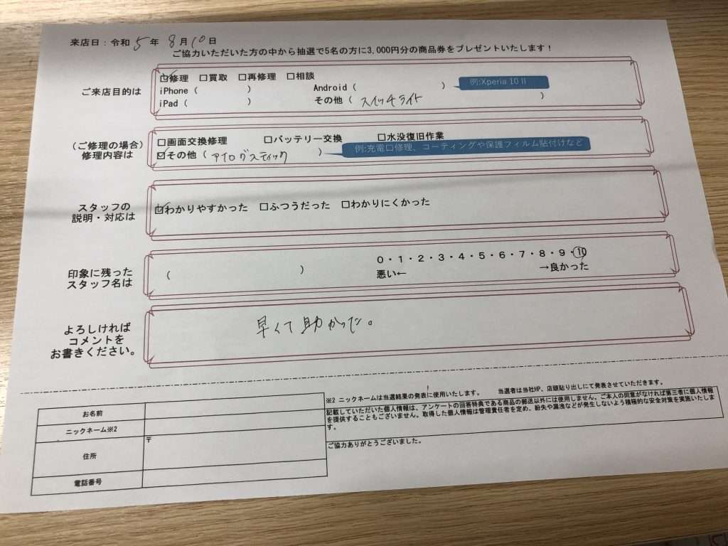 スマホスピタル 大阪梅田 【お客様の声】SwitchLiteアナログスティック交換修理させて頂きました。