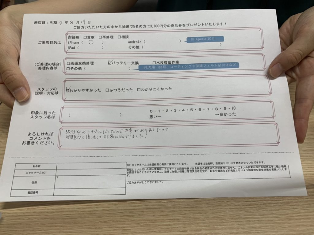 - 旅行中のトラブルだったので不安がありましたが問題なく復活して非常に助かりました!