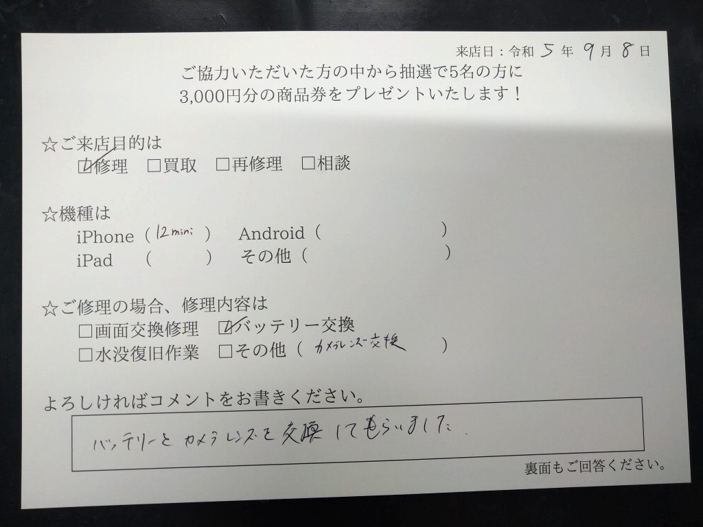 スマホスピタル 大阪梅田 【お客様の声】iPhone 12miniのバッテリー交換とカメラレンズ交換修理をさせて頂きました!