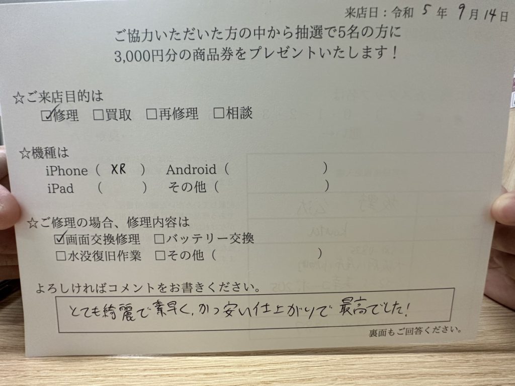 スマホスピタル 大阪梅田 【お客様の声】iPhone XR 画面交換とガラスコーティングをさせていただきました!