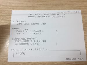 スマホスピタル 大阪梅田 【お客様の声】iPhone11Proバッテリー交換修理させて頂きました!