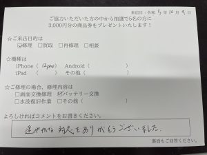 スマホスピタル 大阪梅田 【お客様の声】iPhone12Proのバッテリー交換させていただきました!
