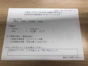 スマホスピタル 大阪梅田 【お客様の声】PSP3000のUMDドライブ交換修理をさせて頂きました!