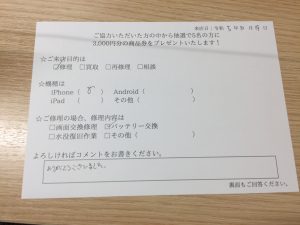スマホスピタル 大阪梅田 【お客様の声】iPhone8バッテリー交換修理をさせて頂きました。