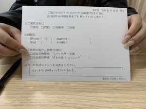 スマホスピタル 大阪梅田 【お客様の声】iPhone12のバックカメラ交換を行いました。