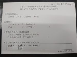 スマホスピタル 大阪梅田 【お客様の声】iPhone15のガラスフィルムを貼らせていただきました!