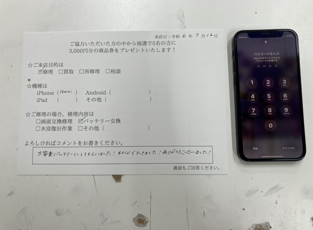 スマホスピタル 大阪梅田 【お客様の声】尼崎市よりお越しのお客様のiPhone12miniのバッテリー交換をしました!