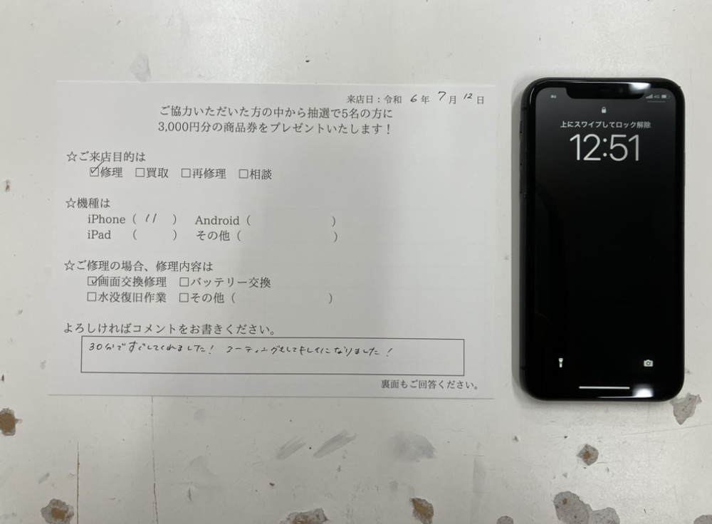 スマホスピタル 大阪梅田 【お客様の声】大阪市よりお越しのお客様のiPhone11の画面交換をしました!