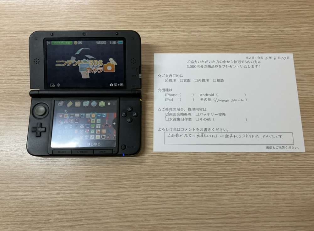 スマホスピタル 大阪梅田 【お客様の声】大阪市北区よりお越しのお客様の3DS LLの上画面交換修理をしました!