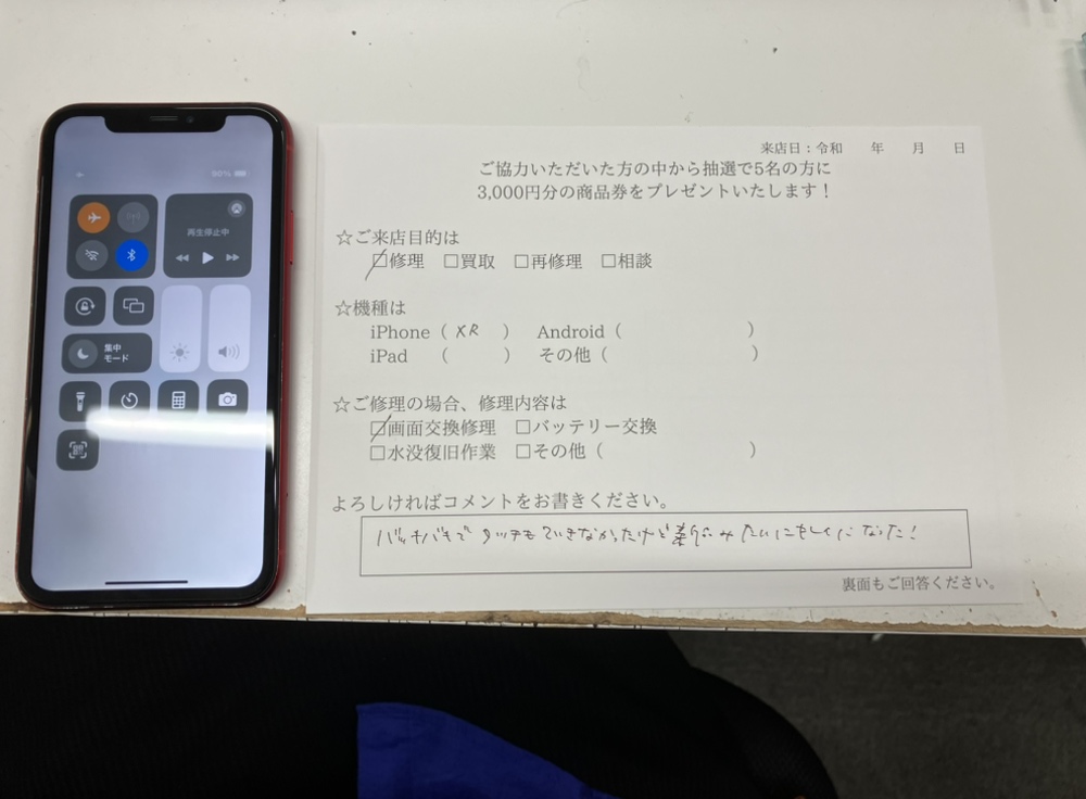 スマホスピタル 大阪梅田 【お客様の声】尼崎市よりお越しのお客様のiPhoneXRの画面交換修理をしました!