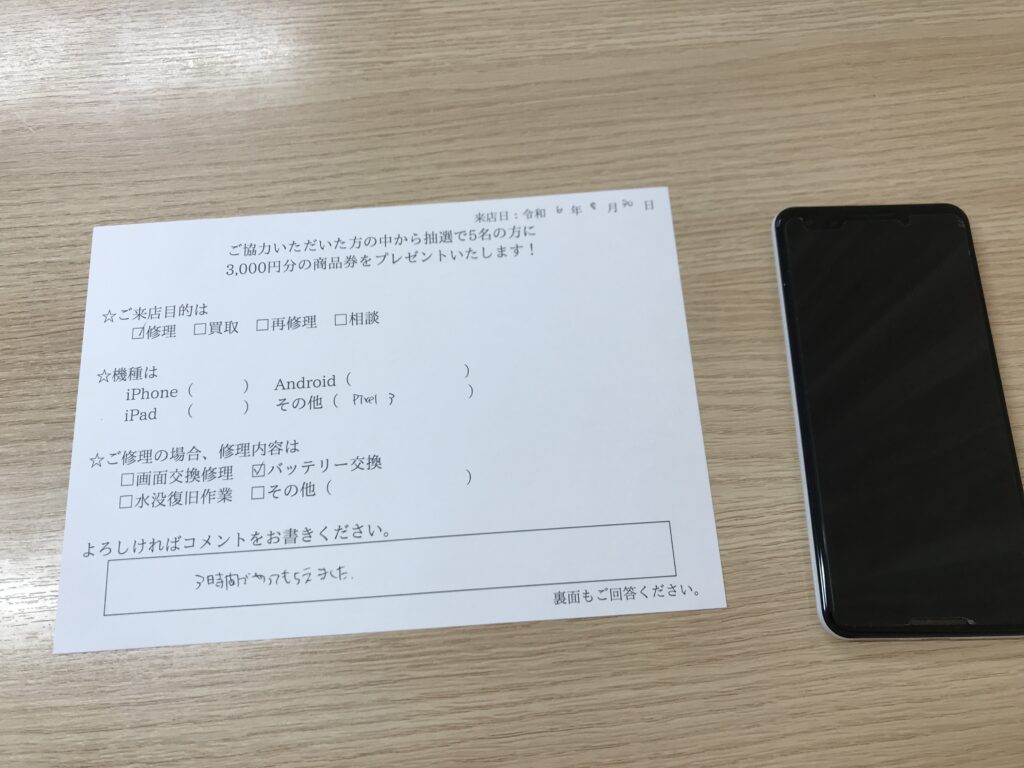 スマホスピタル 大阪梅田 【お客様の声】大阪市よりお越しのお客様Pixel3バッテリー交換修理をさせて頂きました。