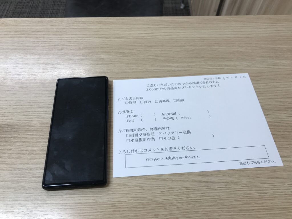 スマホスピタル 大阪梅田 【お客様の声】大阪市よりお越しのお客様Pixel6バッテリー交換修理させて頂きました。