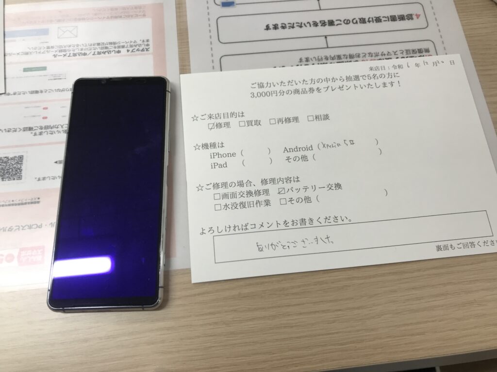 スマホスピタル 大阪梅田 【お客様の声】豊中市よりお越しのお客様Xperia5Ⅱバッテリー交換修理をさせて頂きました。