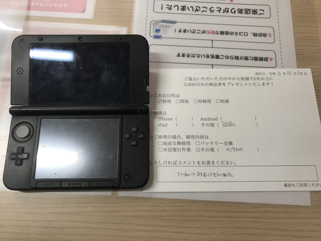 スマホスピタル 大阪梅田 【お客様の声】兵庫県よりお越しのお客様3DSLLメンテナンスをさせて頂きました。