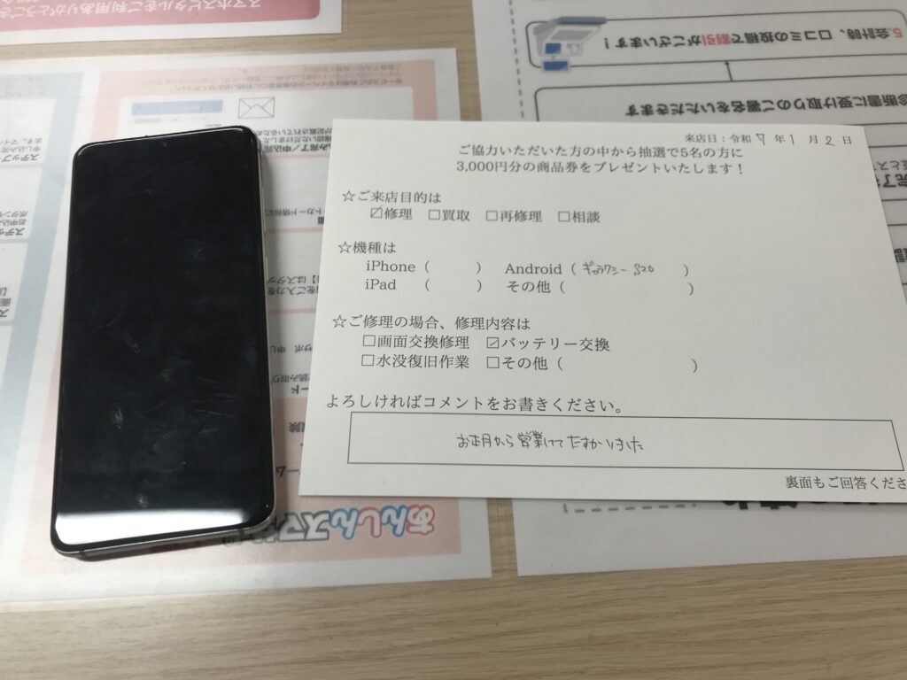 スマホスピタル 大阪梅田 【お客様の声】大阪市よりお越しのお客様GalaxyS20バッテリー交換修理をさせて頂きました。