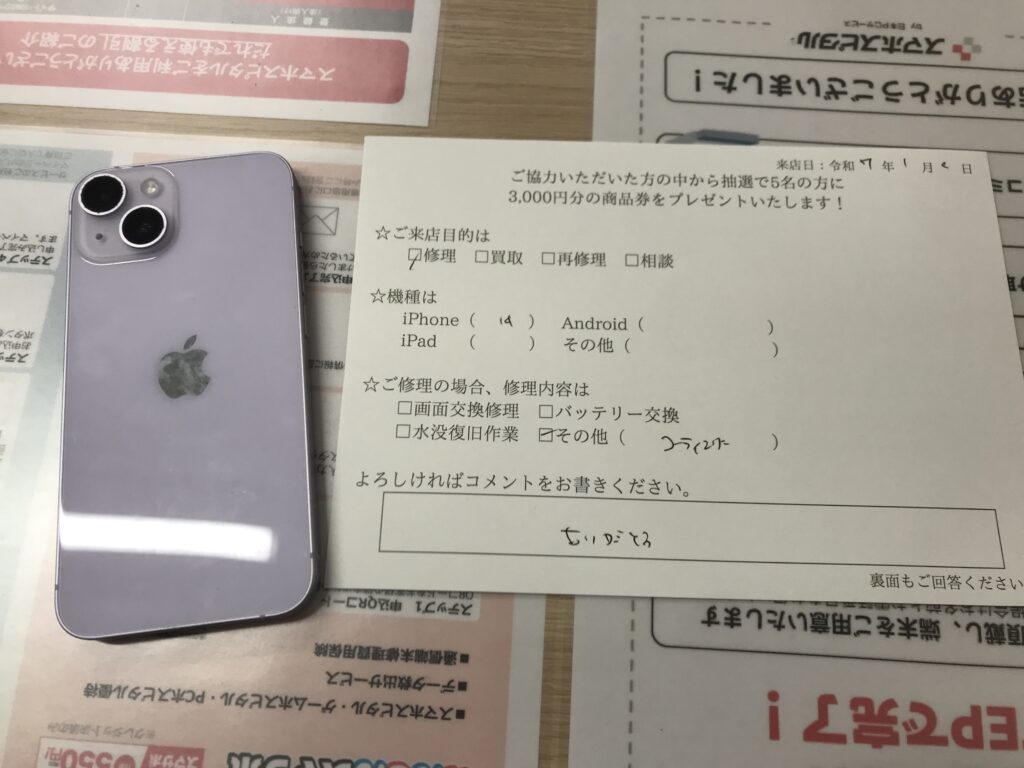 スマホスピタル 大阪梅田 【お客様の声】豊中市よりお越しのお客様iPhone14両面コーティングさせて頂きました。