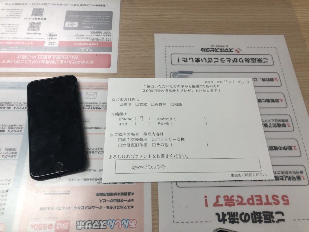 スマホスピタル 大阪梅田 【お客様の声】東大阪市よりお越しのお客様iPhone7バッテリー交換修理をさせて頂きました。