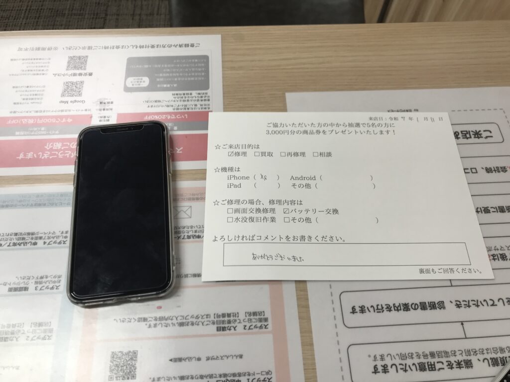 スマホスピタル 大阪梅田 【お客様の声】大阪市よりお越しのお客様iPhoneXsバッテリー交換修理をさせて頂きました。