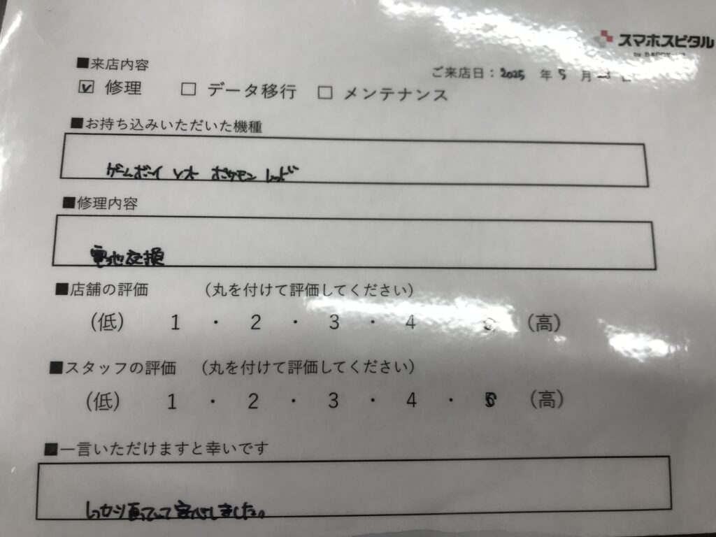 スマホスピタル 大阪梅田 【お客様の声】西宮市よりお越しのお客様ゲームボーイのソフト電池交換修理をさせて頂きました。