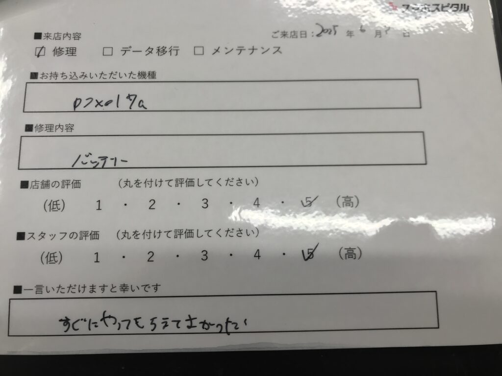 スマホスピタル 大阪梅田 【お客様の声】大阪市よりお越しのお客様Pixel7aバッテリー交換修理をさせて頂きました。