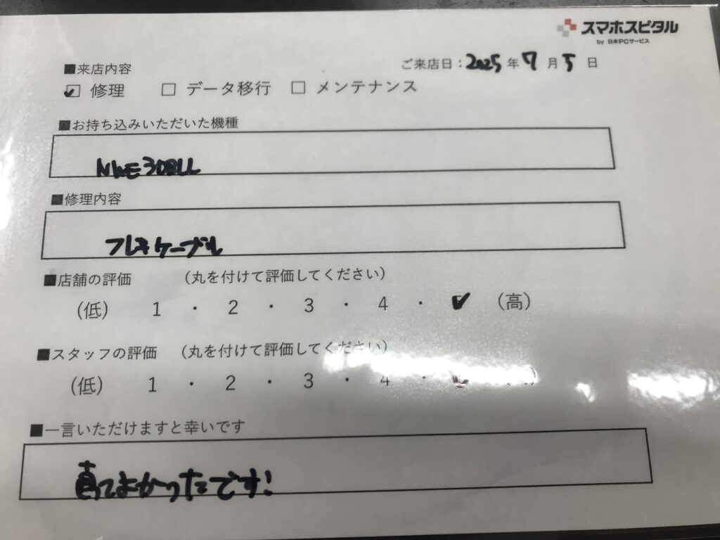 スマホスピタル 大阪梅田 【お客様の声】豊中市よりお越しのお客様NEW3DSLLフレキシブルケーブル交換をさせていただきました。