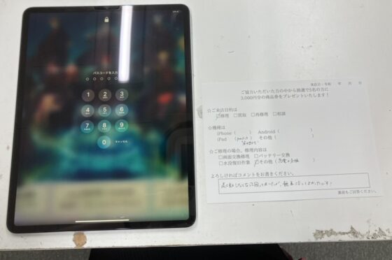 【お客様の声】大阪市よりお越しのお客様のiPad Pro 12.9(第4世代)の充電口修理をしました!