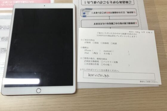【お客様の声】東大阪市よりお越しのお客様iPadAir3画面交換修理をさせて頂きました。