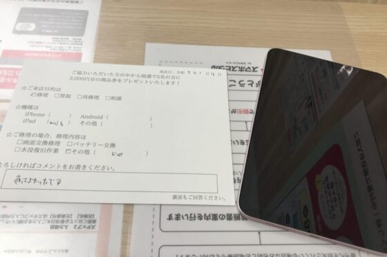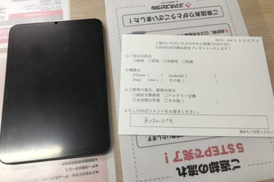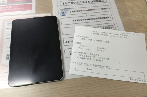 【お客様の声】東大阪市よりお越しのお客様iPadmini6バッテリー交換修理をさせて頂きました。