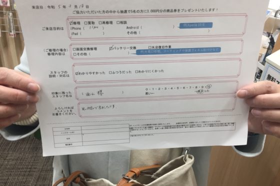 弊社の修理サービスをご利用いただいきましたお客様の声です。