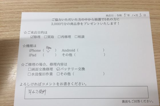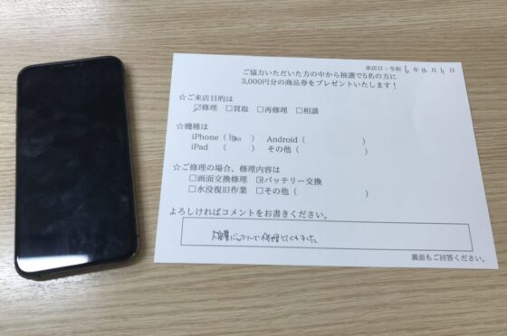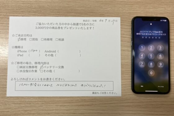 【お客様の声】iPhone11Proのバッテリー交換させていただきました!