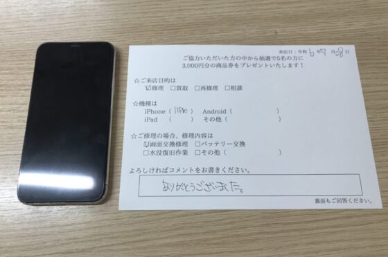 【お客様の声】iPhone11Proの画面交換させていただきました。