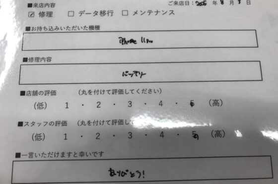 弊社の修理サービスをご利用いただいきましたお客様の声です。
