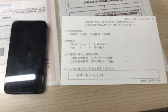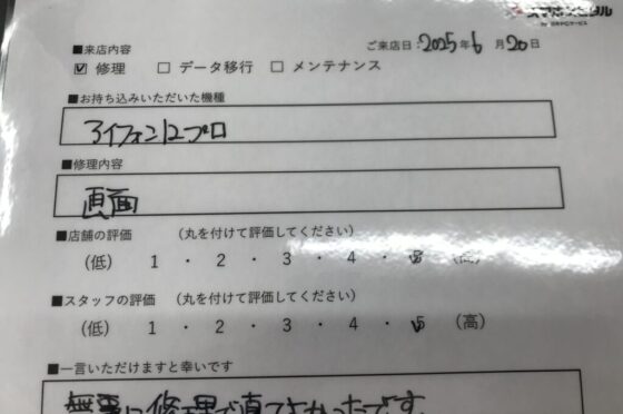 【お客様の声】東大阪市よりお越しのお客様iPhone12Pro画面交換をさせて頂きました。