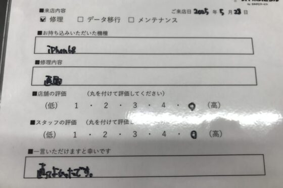 弊社の修理サービスをご利用いただいきましたお客様の声です。