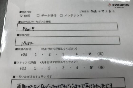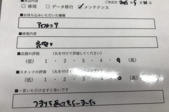弊社の修理サービスをご利用いただいきましたお客様の声です。