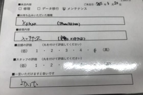 【お客様の声】西宮市よりお越しのお客様iPhoneXSMax充電口のメンテナンスをさせて頂きました。
